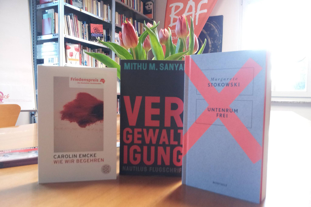 In der baf-Bibliothek bieten wir Bücher zu Themen wie Geschlechterforschung, Frauen*leben und queer-Feminismus, sexualisierte Gewalt, Schwangerschaftsabbruch, Ausstellungskataloge, Körper und Seele, feministische Spiritualität, Frauengeschichte, Zeitschriften – und auch Romane, Biographien, Krimis und Lesben-Literatur.